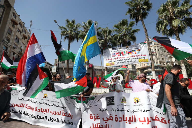 l'ondata di riconoscimenti dello Stato di Palestina,sventolando