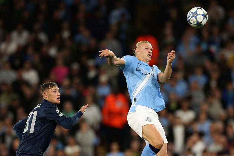 Il Manchester City batte il Napoli 2-0 (0-0) in una partita della prima giornata della fase campionato di Champions League. Gli azzurri di Antonio Conte giocano tre quarti di partita in dieci, per l'espulsione di Di Lorenzo, che falcia Haaland lanciato a rete.